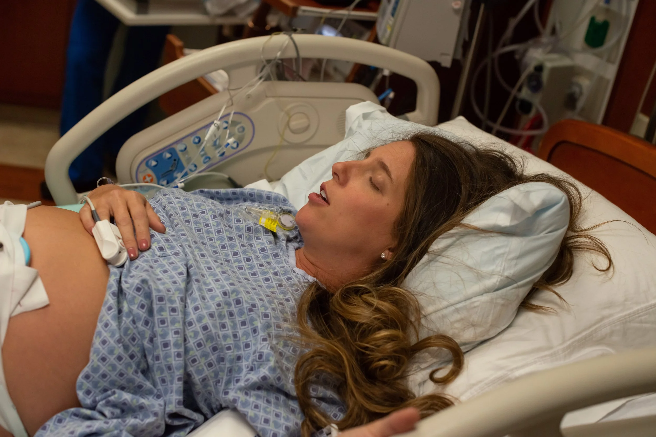 A little after noon, they increased my Pitocin in preparation to get me an epidural and then break my water. I started to feel the contractions coming on stronger but also was annoyed it was taking so long because they wouldn’t let me eat. Next they came in to give me the epidural. I seriously hate this part. I don’t remember getting it with Galilee because I was blacked out from pain, but remember it being so awkward and uncomfortable for Marvel. It seemed to take an unusually long time and I recall them trying several spots before they got it right. They had me lay on my side and checked me, I was now 4cm which seemed very slow compared to the 3cm I was when I had been admitted several hours before. Now that I had the epidural and supposedly no longer feel anything, the midwife came in to break my water and speed things along. As she… ahem…. got in there, I remember thinking, ok, wow, so this feels weird, and I must have been flinching and making facial expressions because she asked me if I could feel it which I said, yes I certainly can. She said not to worry, the epidural would start to circulate and take effect soon. Over the next 20 to 30 minutes the contractions really intensified and started getting closer. I could no longer talk through them and was feeling every bit of each one that went by.